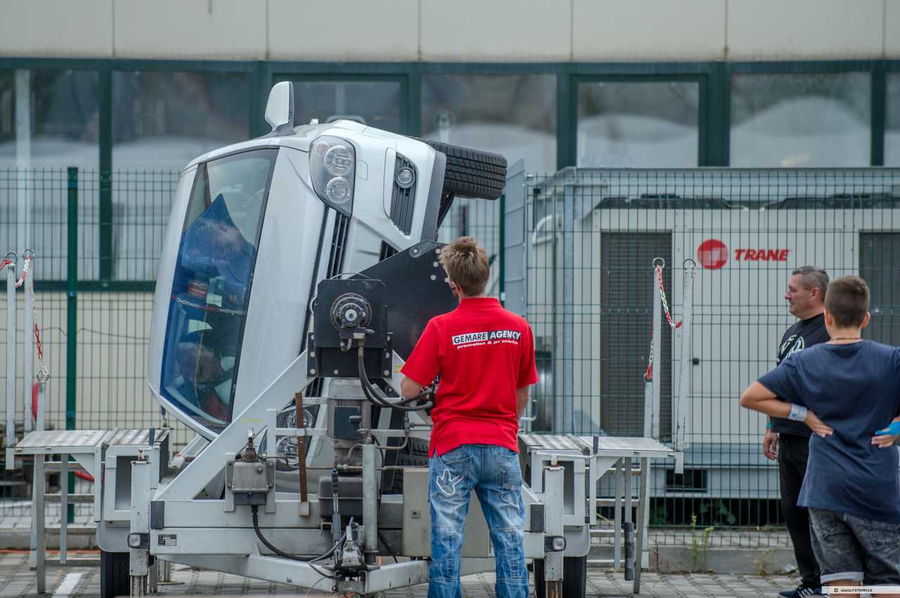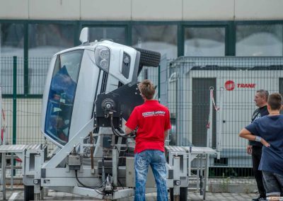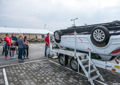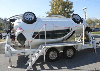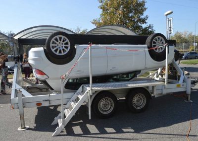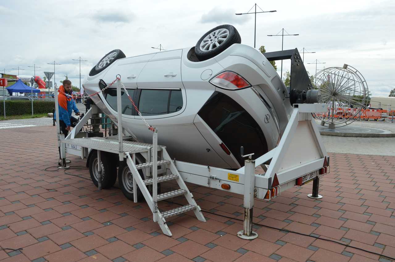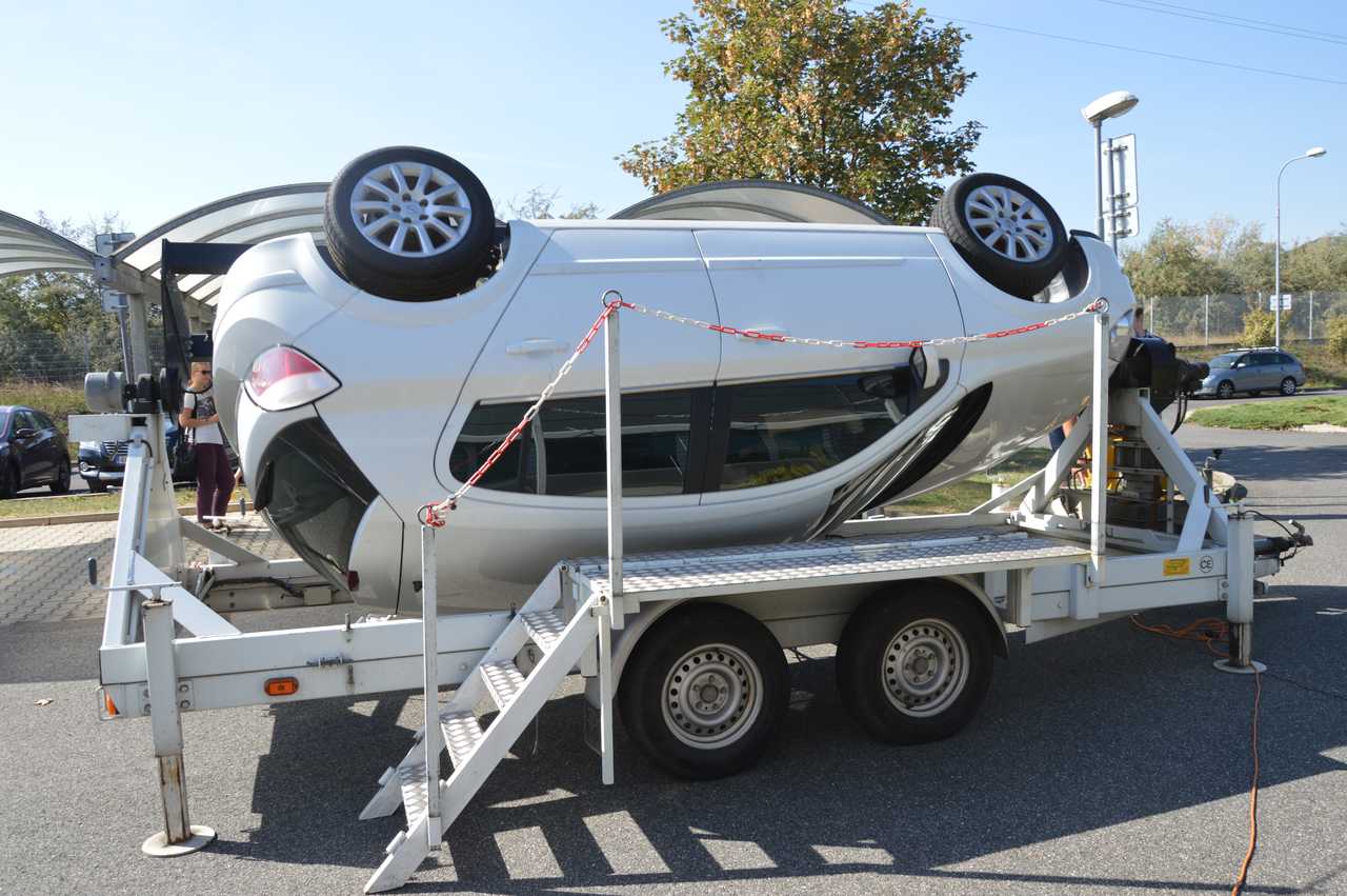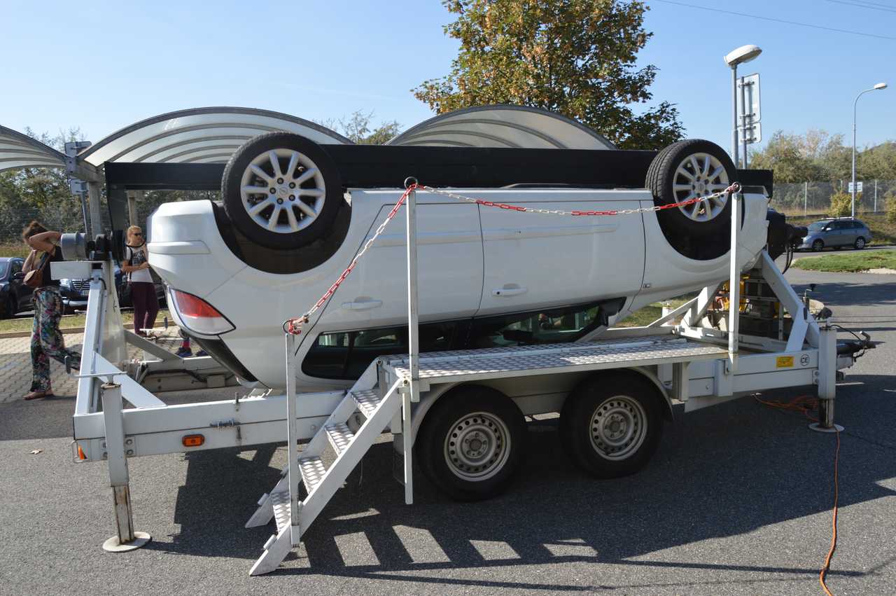 Pocity řidiče nebo spolujezdce při dopravní nehodě a převrácení vozidla, si můžete vyzkoušet na simulátoru převrácení vozidla. Otočný simulátor je také určen k nácviku vyprošťování osob z havarovaného vozidla. Návštěvníci simulátoru dopravní nehody mají reálnou možnost vyzkoušet si funkci bezpečnostních pásů a nenásilnou formou je tak přesvědčit k jejich používání.